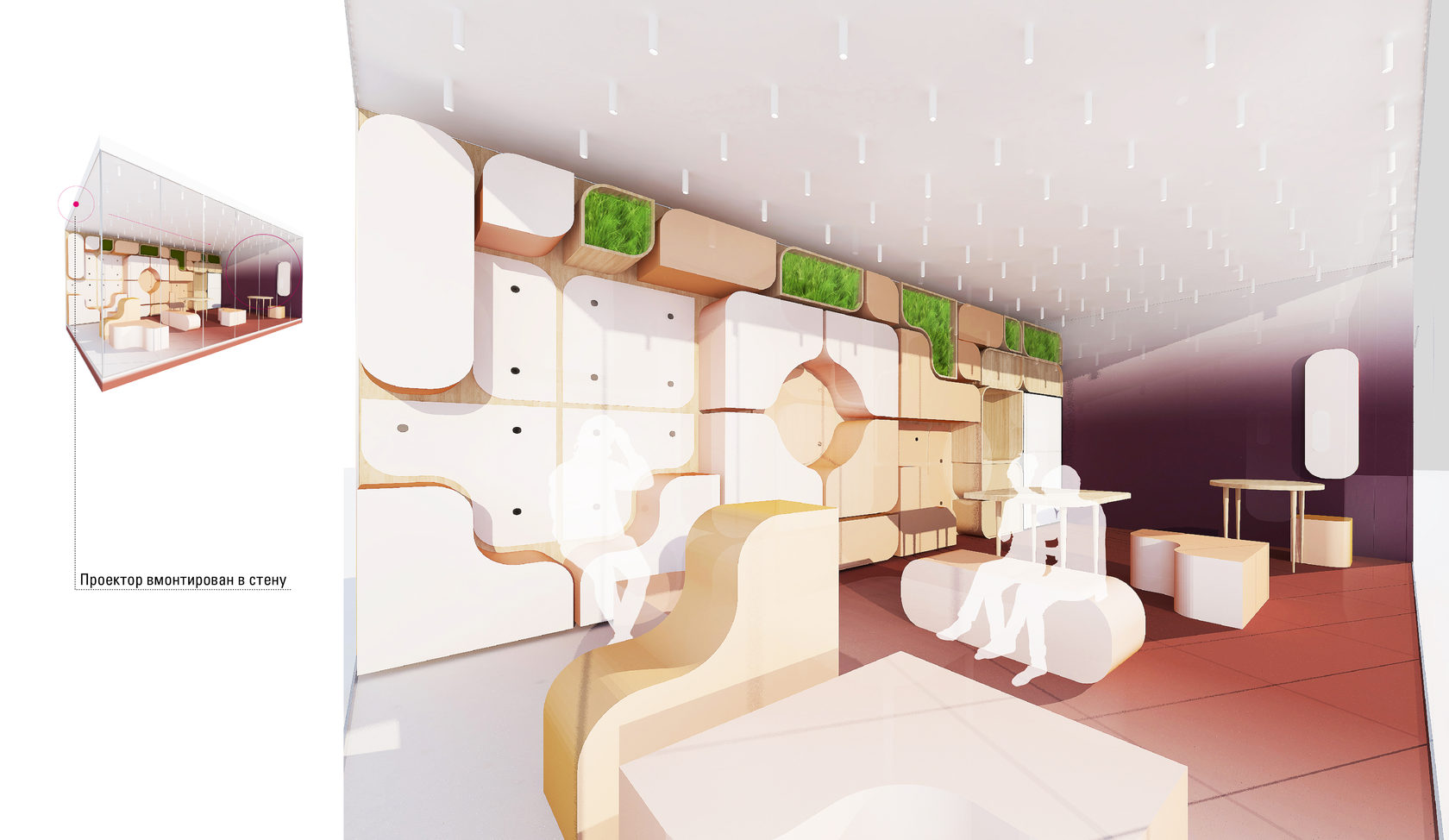 All components of the wall could create different compositions comfortable for peopleresting in each room.