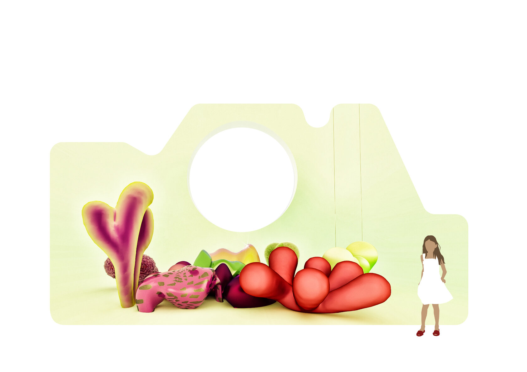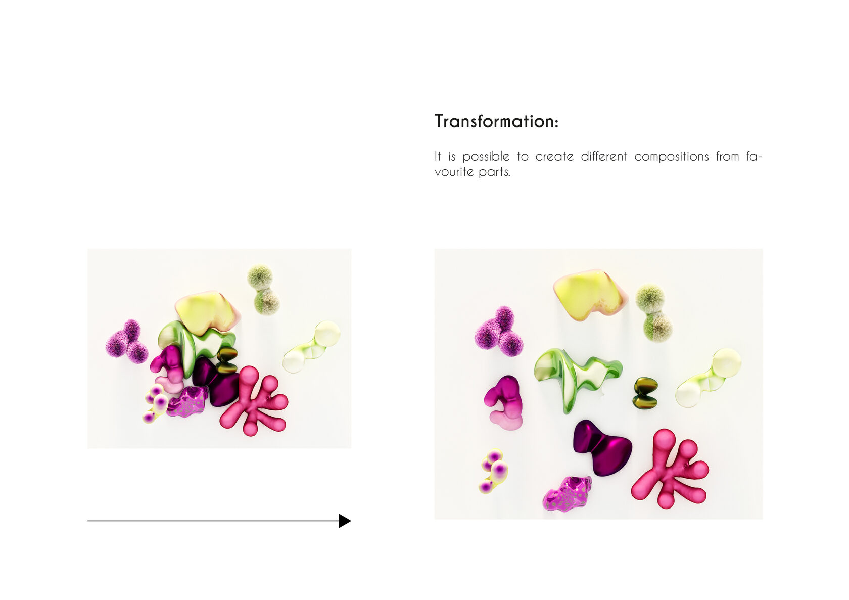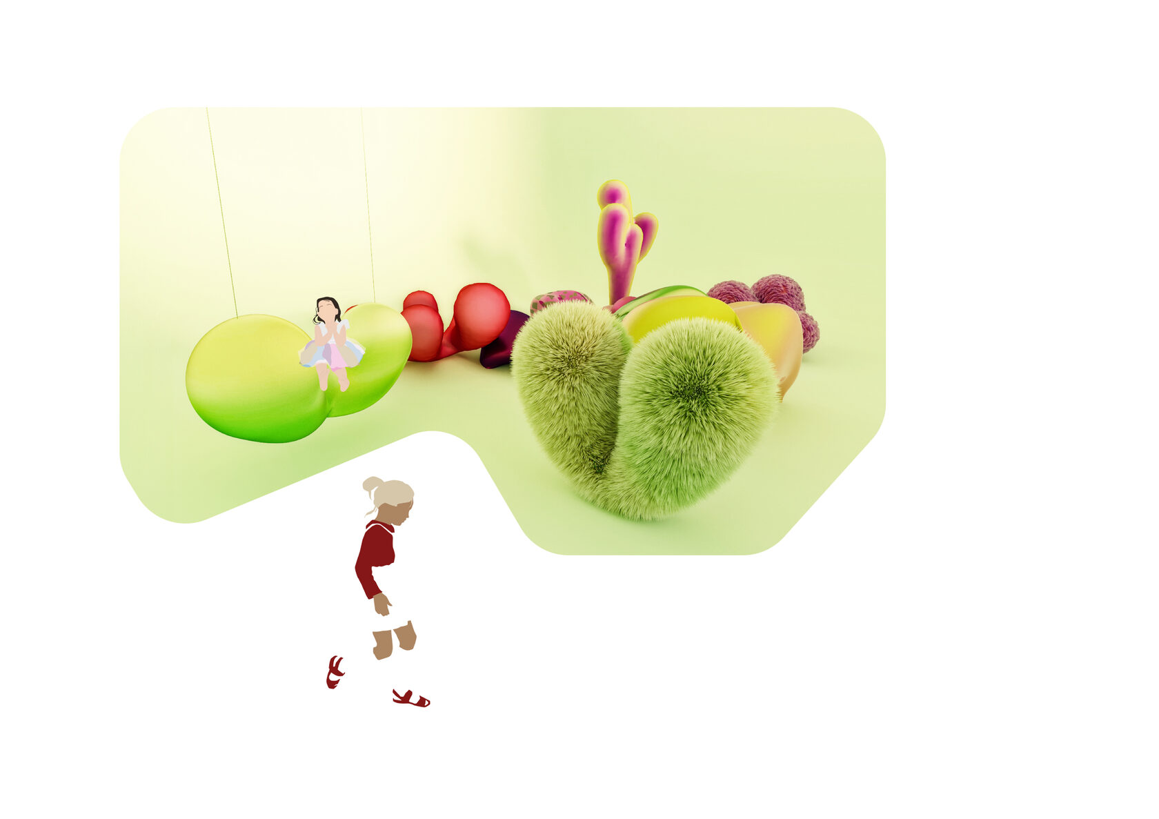 Children's playground furniture, all items are made of recycled plastic, they can be transformed into one composition or could create new small compositions. The idea of the project is - that once discarded toys can have a second, third or fourth life.