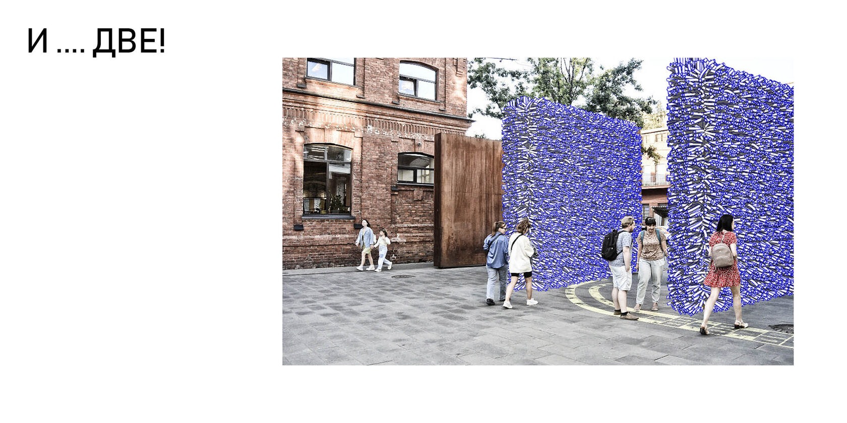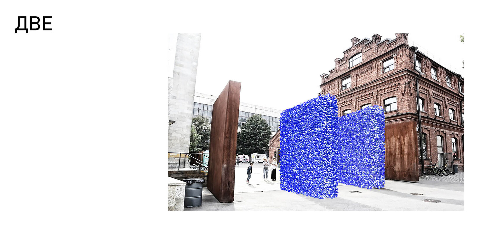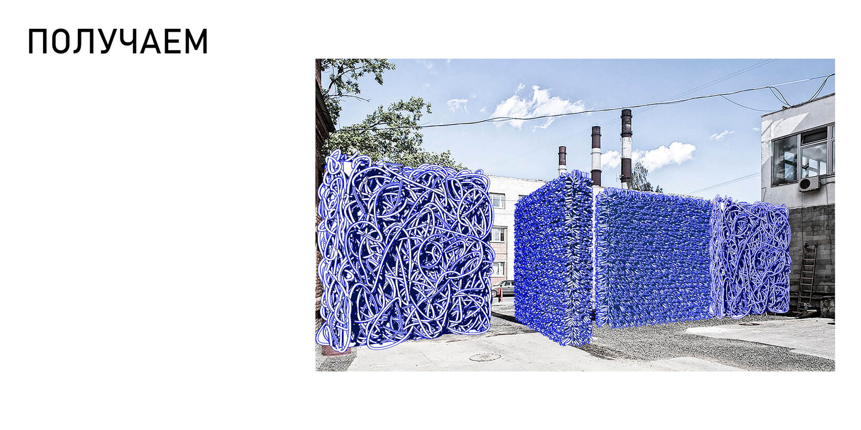 Entrance group for Sevkabel port. Entrance gates are designed by using flexible tubes woven into a frame, which is independently attached to the gates.