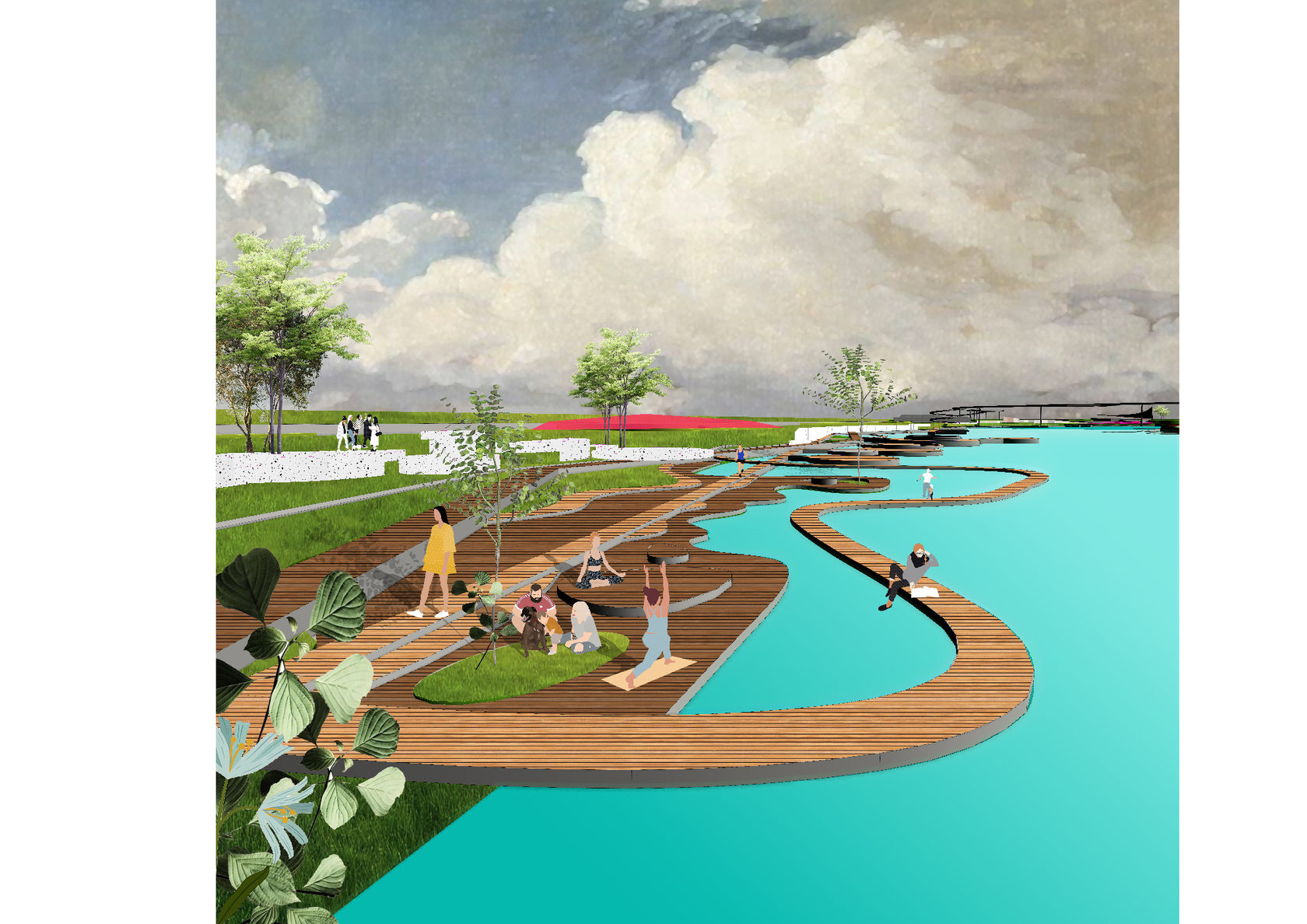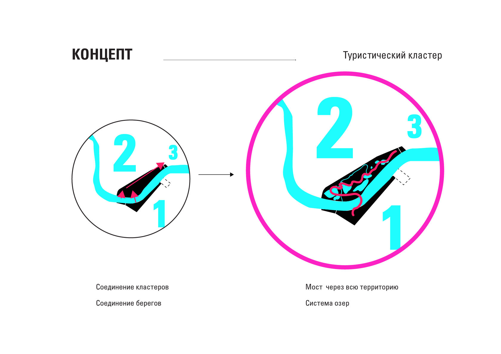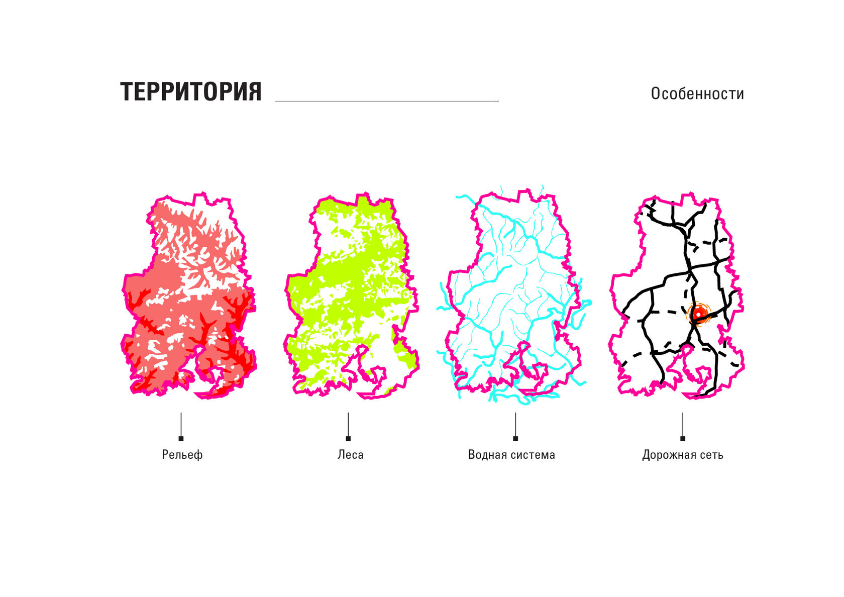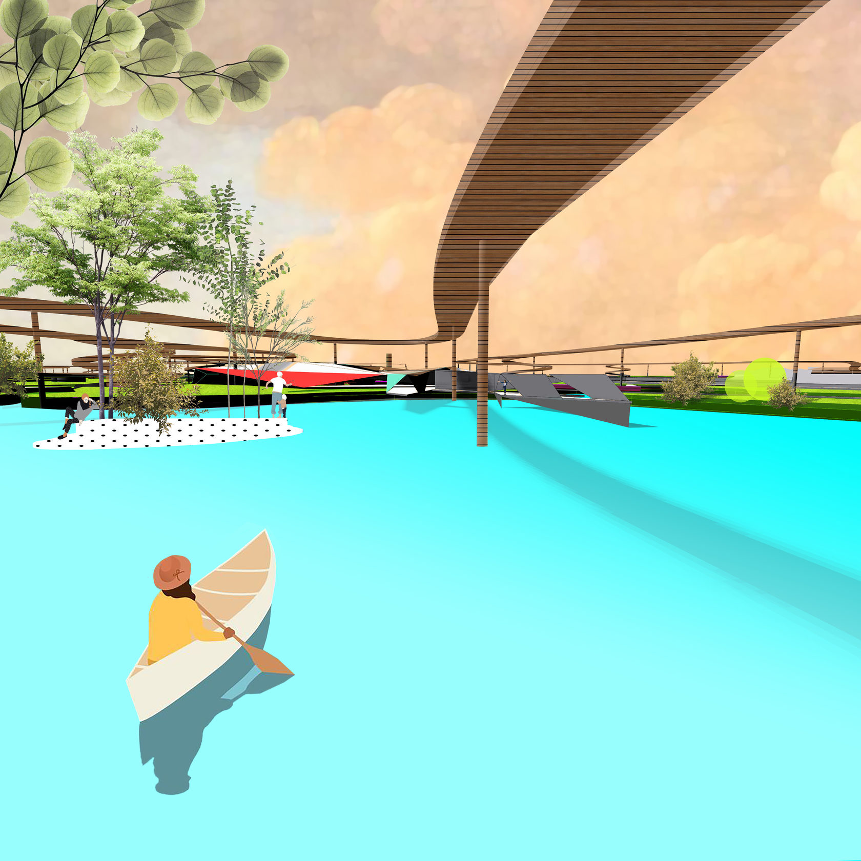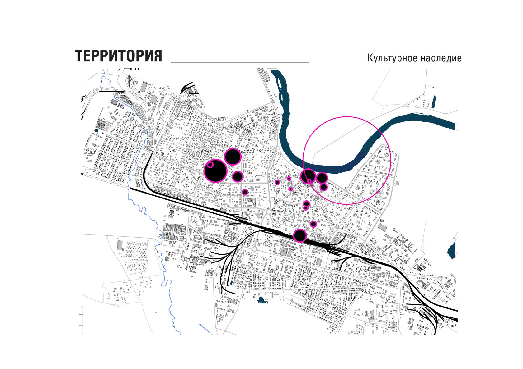 The project consists of two parts - a park in Glazov and the settlement of Idnakar. Plan forms are obtained and structures from ornaments. The park area is connected to the center of Glazov by a pedestrian bridge, which stretches along all the sites of the park, connecting them with each other. Also, artificial reservoirs have been dug out in the park, which are the second artery for movement.