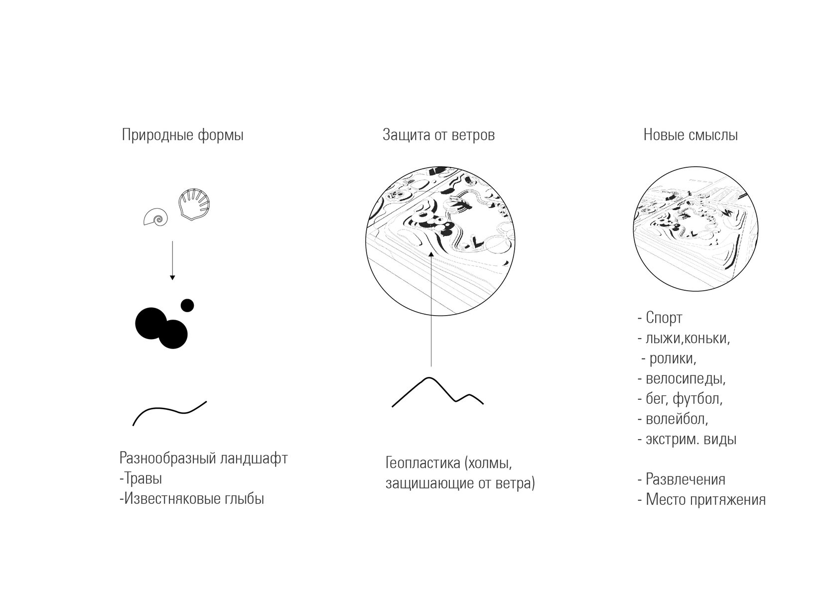 By means of a landscape, protect territories from the wind, using natural forms and plants inherent in this area.