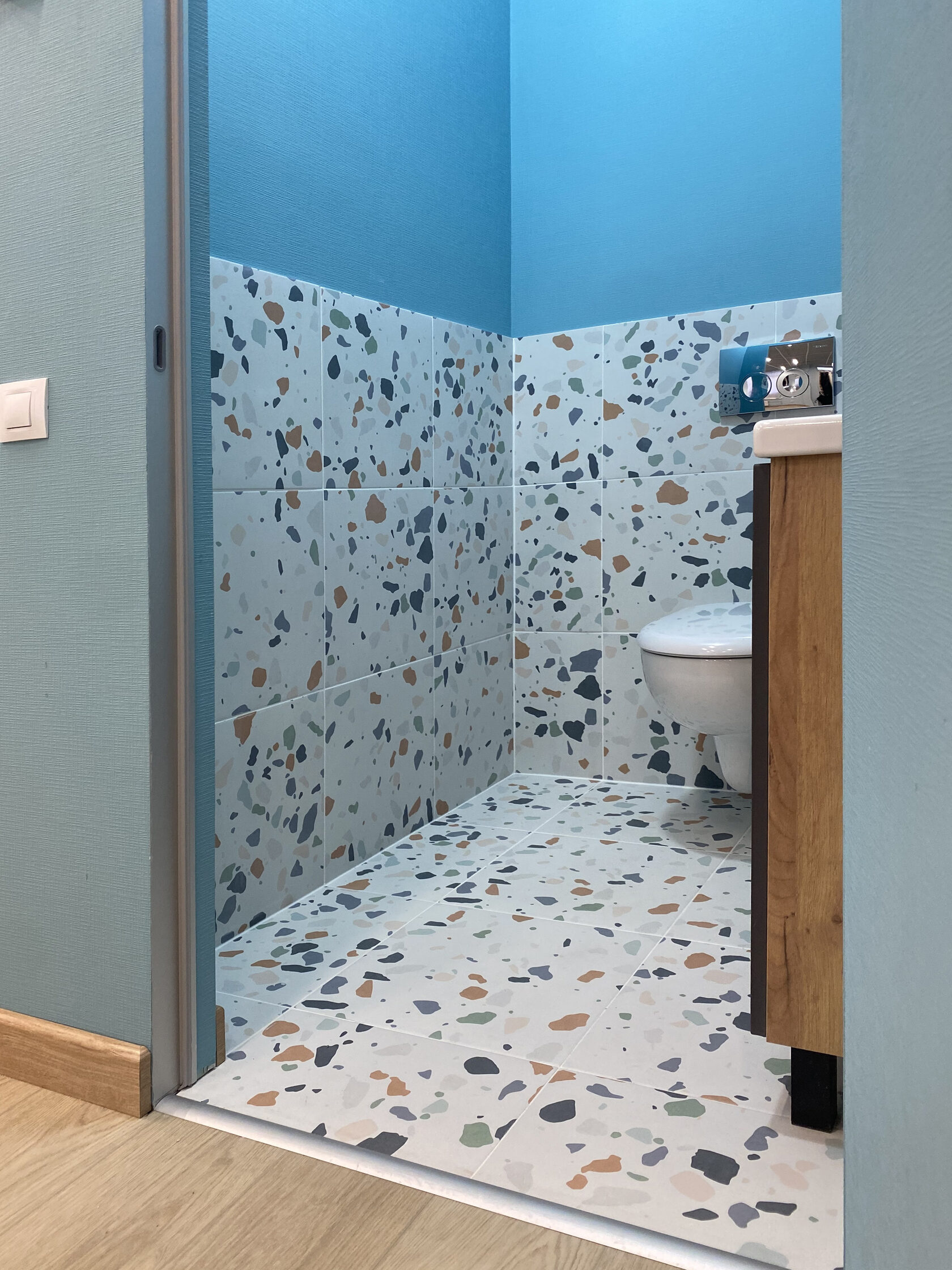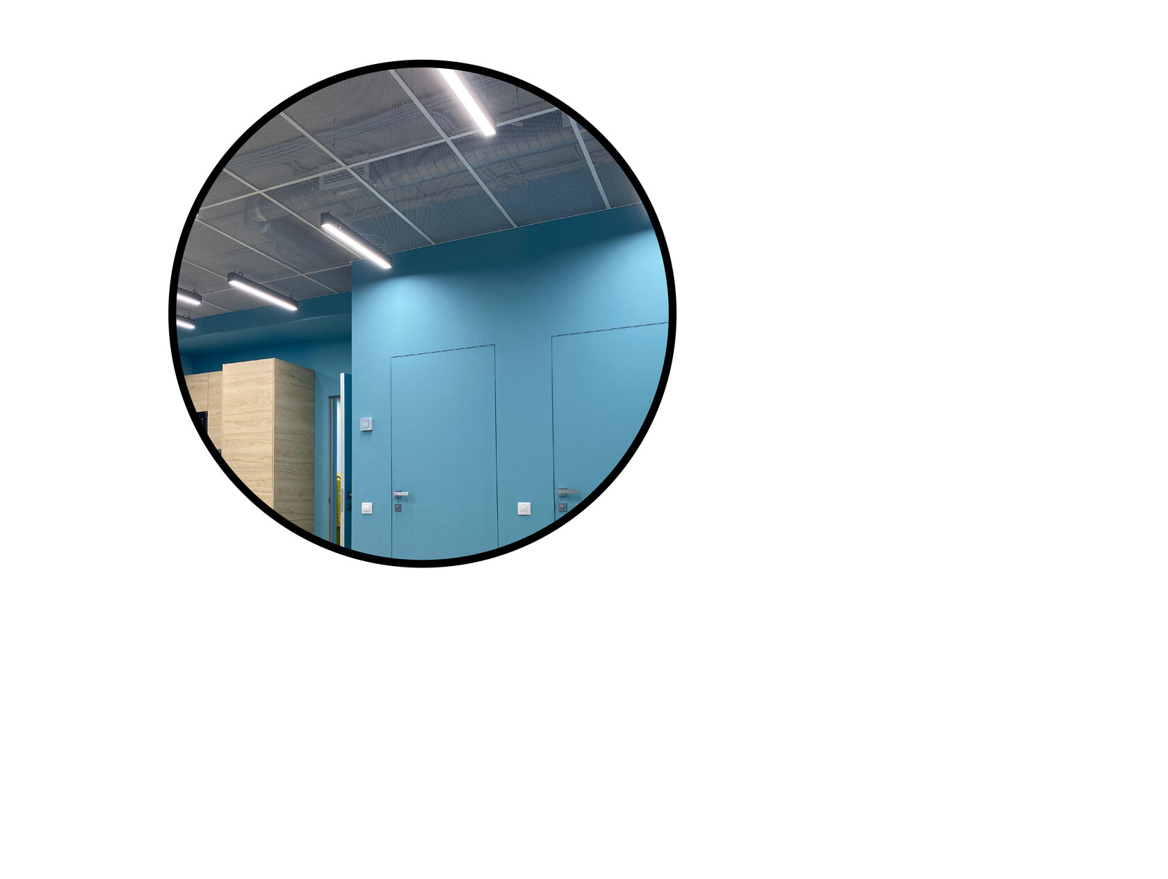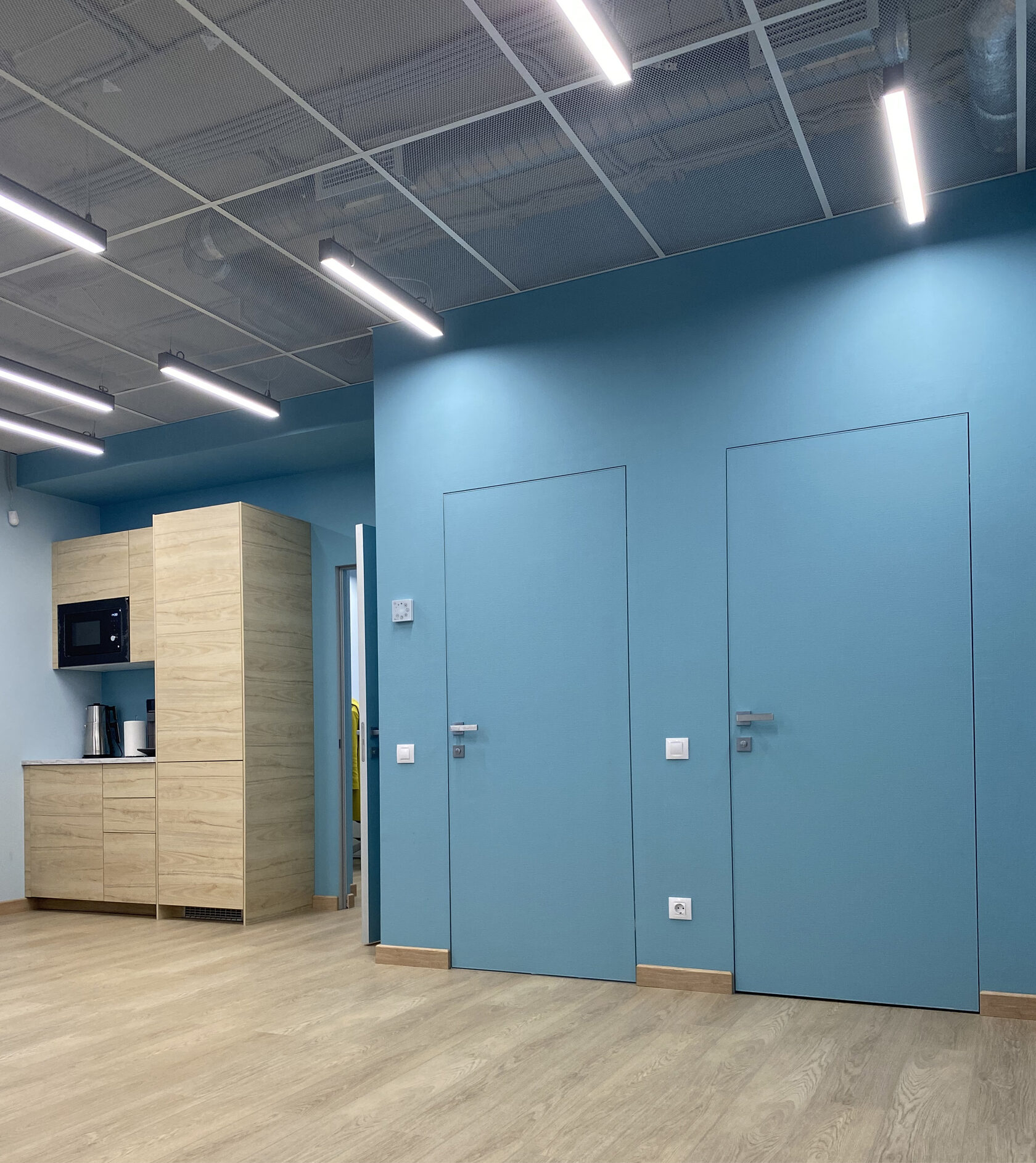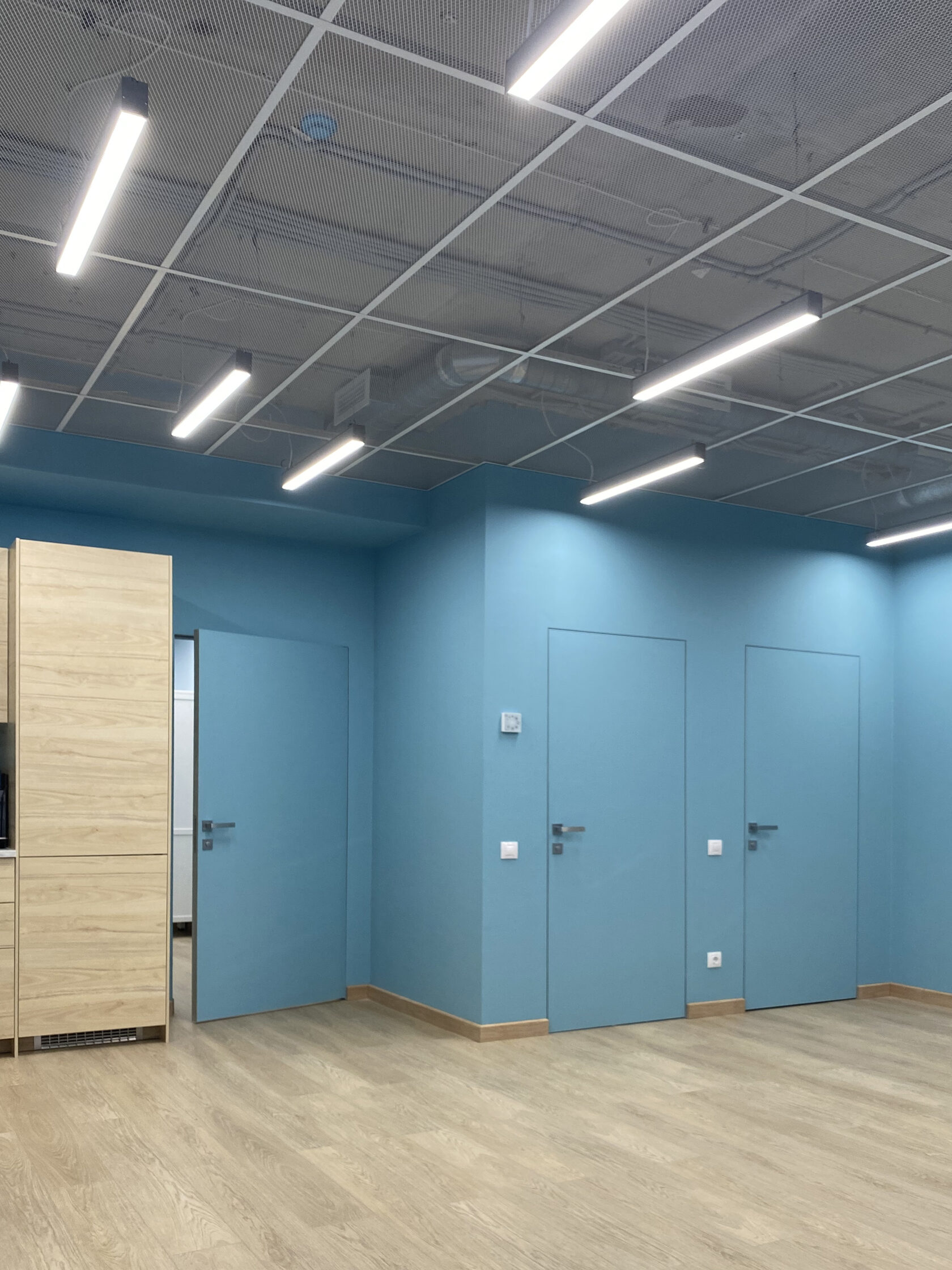 Офис для Лифтовой компании, выполнен в голубых и натуральных тонах.